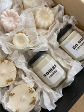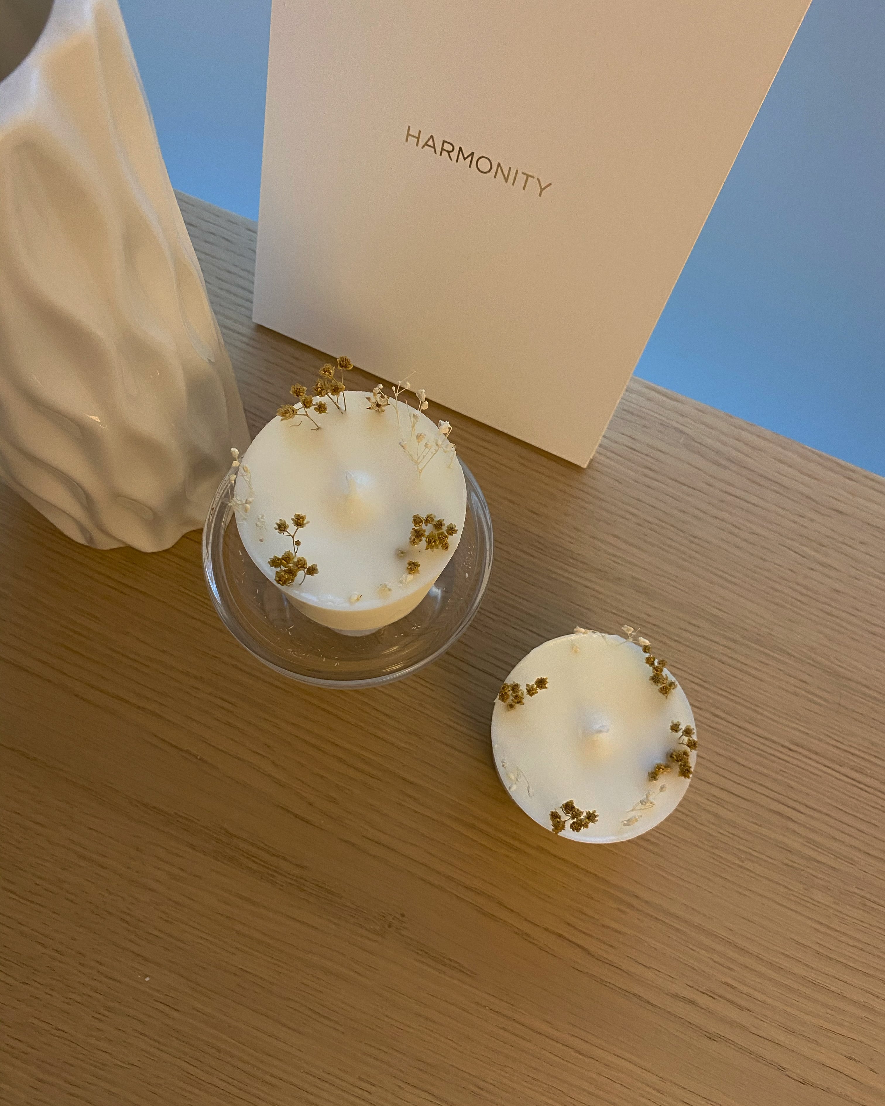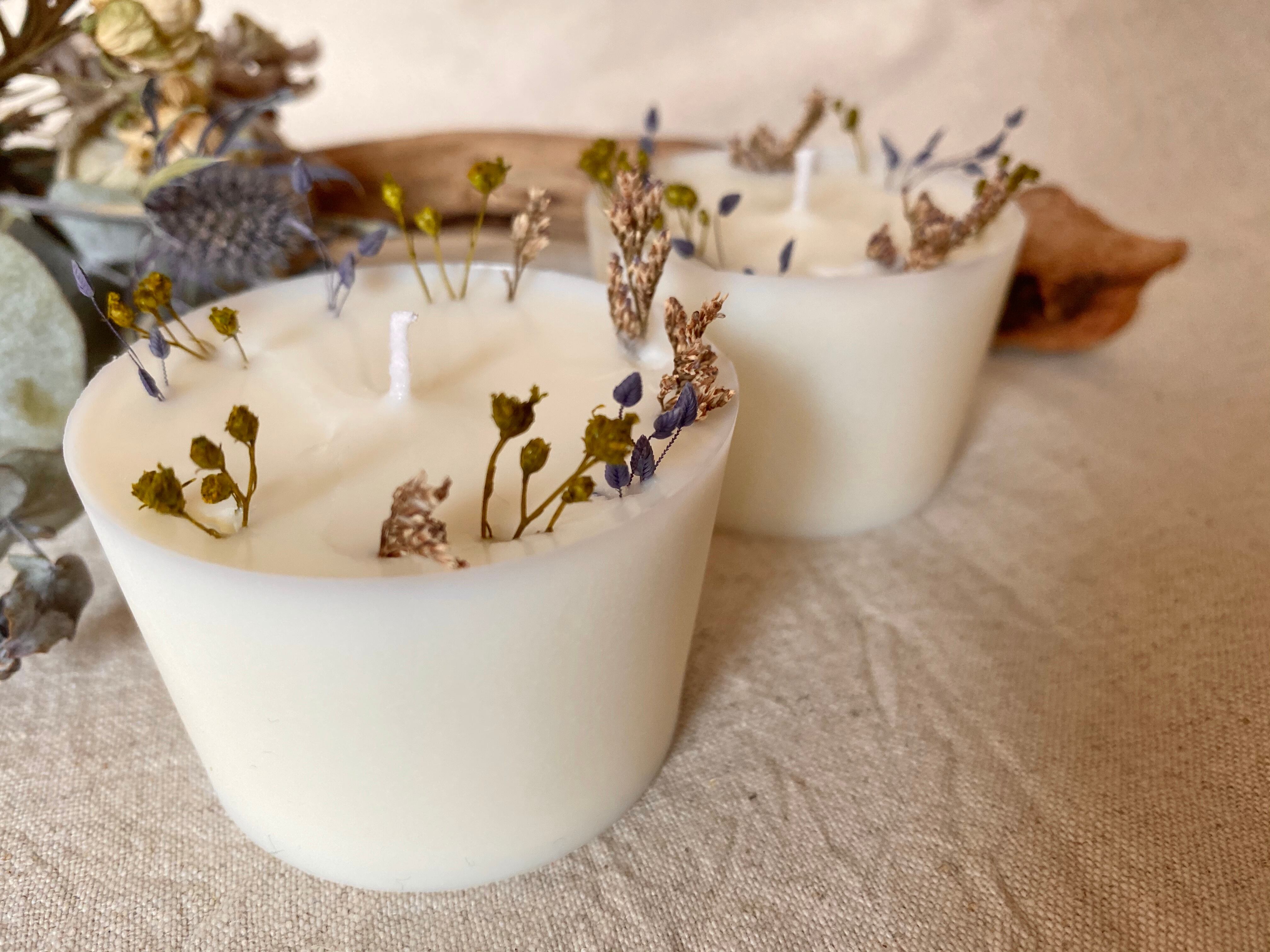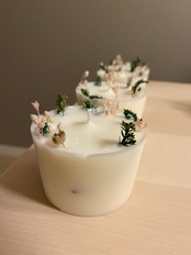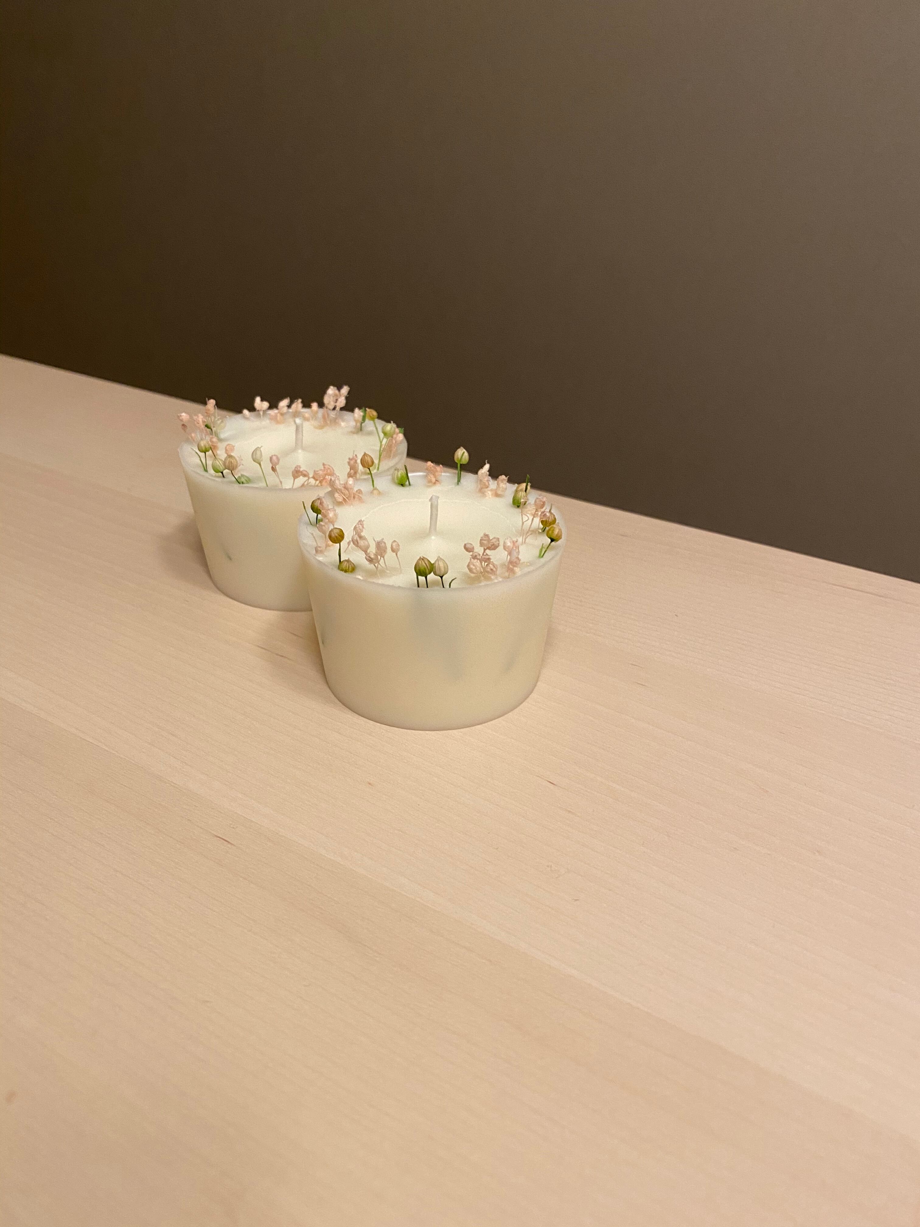 ドライフラワーをあしらったボタニカルキャンドルのsmallサイズ。