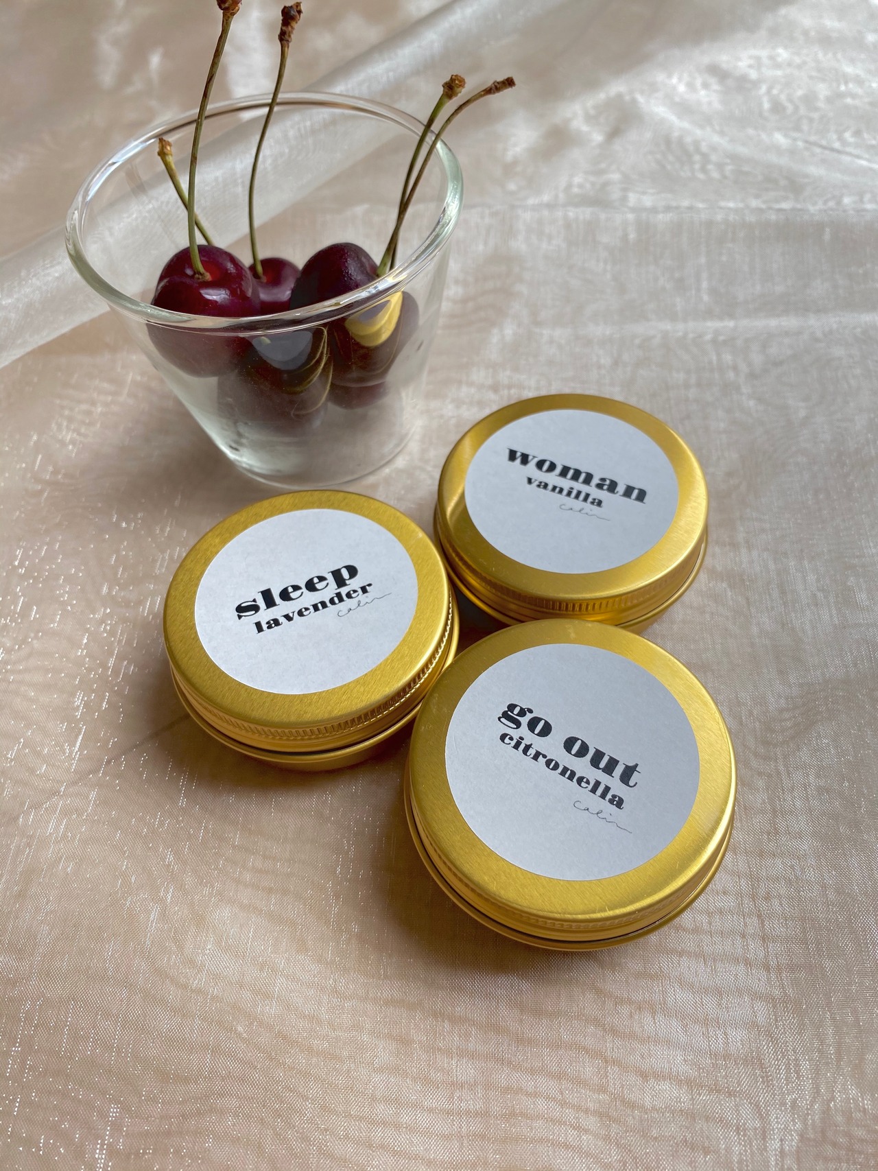 甘く癒されるvanilla、精神安定/安眠効果のlavender、ポジティブ/虫除け効果のcitronellaの3点。