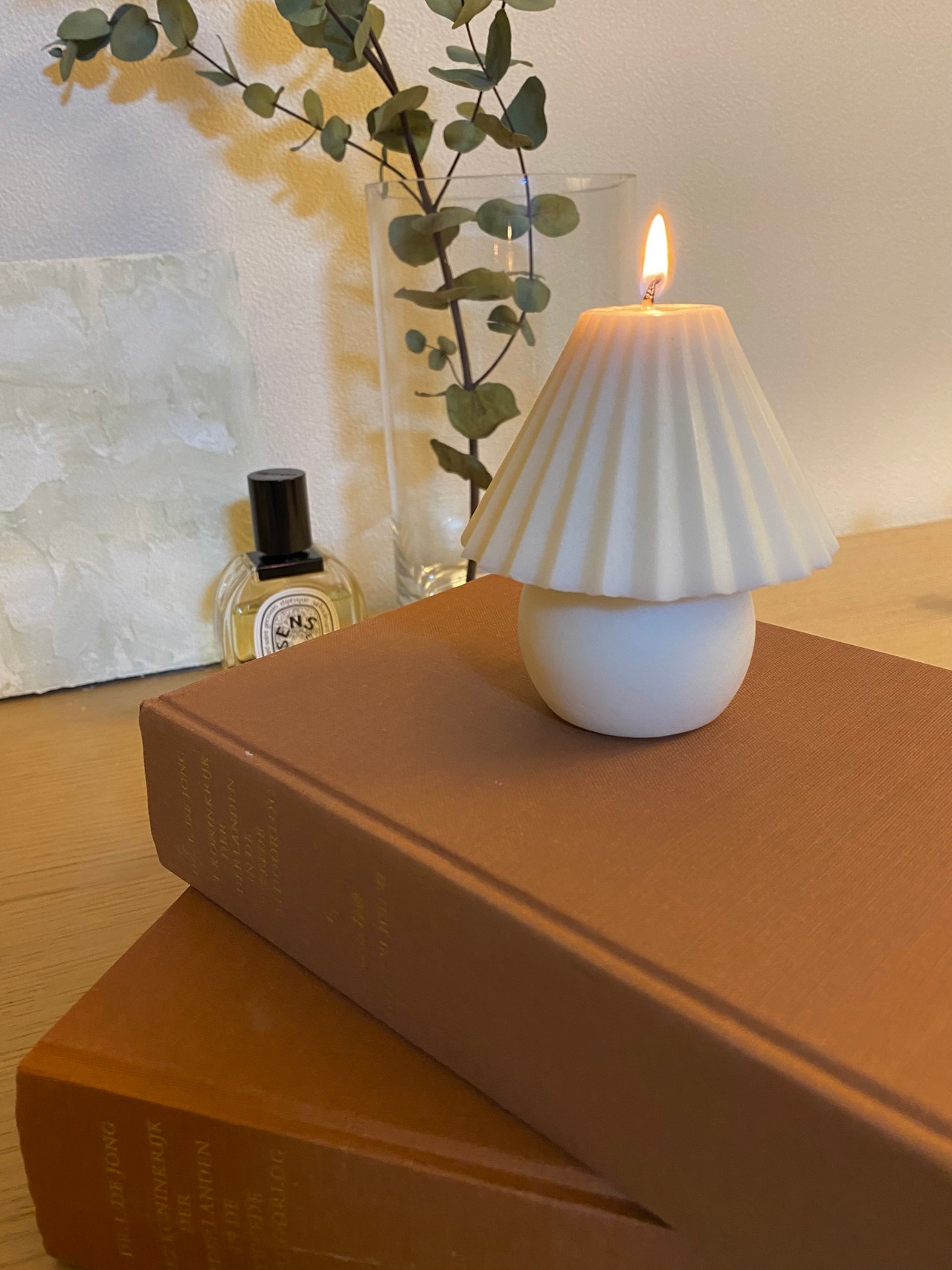 やさしいオフホワイトに火を灯すと、温かい光が広がり、癒しの空間をつくります。